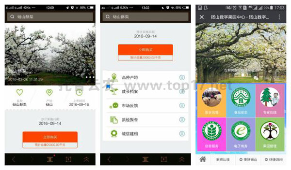 碭山“數(shù)字果園”的托普云農(nóng)綜合管理平臺還嵌入了農(nóng)產(chǎn)品質(zhì)量安全追溯系統(tǒng),實現(xiàn)“從農(nóng)田到餐桌”的全程可追溯化管理。該系統(tǒng)是區(qū)域農(nóng)產(chǎn)品質(zhì)量安全信息統(tǒng)一發(fā)布和查詢平臺,根據(jù)農(nóng)產(chǎn)品“一物一碼”標準,消費者可以掃描農(nóng)產(chǎn)品上附帶的而為買,準確了解農(nóng)產(chǎn)品從生產(chǎn)、加工、物流、倉儲、銷售等全過程信息。