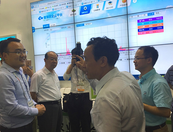 圖為:屈冬玉副部長(zhǎng)針對(duì)物聯(lián)網(wǎng)應(yīng)用進(jìn)行現(xiàn)場(chǎng)指導(dǎo)