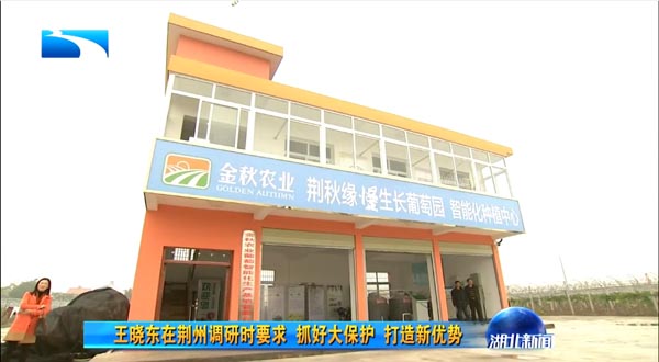 湖北省委副書記、代省長王曉東在荊州市市委書記李新華、市長楊智等領(lǐng)導(dǎo)陪同下蒞臨金秋農(nóng)業(yè)智能化葡萄示范基地調(diào)研現(xiàn)代農(nóng)業(yè)發(fā)展情況。饒有興趣的參觀了"智能化中心"水肥一體化設(shè)施,了解托普云農(nóng)水肥一體化的精準生產(chǎn)過程。