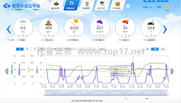 托普云農(nóng)傳感器在智慧農(nóng)業(yè)云平臺上的數(shù)據(jù)監(jiān)測顯示