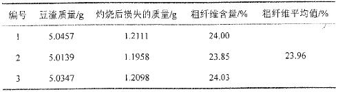表 豆渣中粗纖維的測(cè)定結(jié)果
