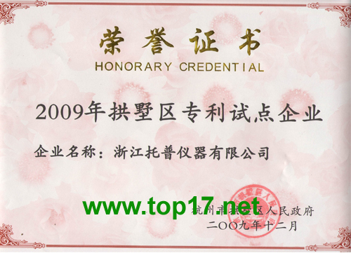 恭喜浙江托普儀器有限公司被評(píng)為2009年拱墅區(qū)專利試點(diǎn)企業(yè)!