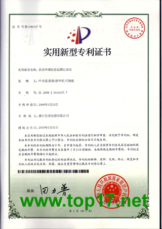 多年來,浙江托普儀器有限公司在產(chǎn)品研發(fā)上一直孜孜以求,投入很大的人力與財力,以繼續(xù)保持并發(fā)揚浙江托普的品牌。此次浙江托普農(nóng)業(yè)環(huán)境記錄儀獲實用新型專利和軟件著作權就是一個很好的證明,我們會繼續(xù)努力,不辜負廣大朋友對我們的信賴與支持!