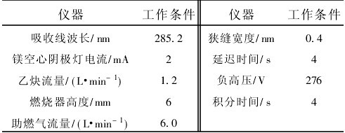 膏狀的葉綠素中主要是葉綠素鎂鈉鹽,在進(jìn)行試驗(yàn)的時(shí)候,稱取0.100 5 g葉綠素鎂鈉鹽,配制成50.00 mL葉綠素的儲(chǔ)備液。準(zhǔn)確移取1.00 mL葉綠素鎂鈉溶液于8只50.00 mL容量瓶中,再分別加入0.00、2.00、2.20、2.40、2.60、2.80、3.00、3.20 mL的50.00 mg·L-1Mg2+標(biāo)準(zhǔn)溶液,定容,搖勻。按一下的測定環(huán)境要求使用原子吸收分光光度計(jì)測定并繪制工作曲線,并計(jì)算線性回歸方程。就可以通過這一線性方程來進(jìn)行計(jì)算葉綠素含量了。