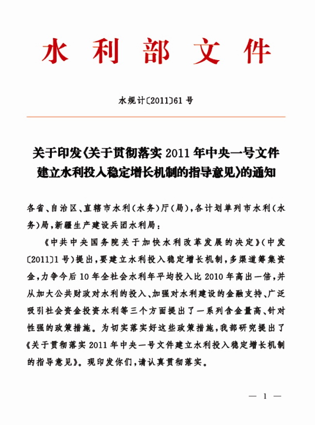 2011年中央一號(hào)文件建立水利投入穩(wěn)定增長機(jī)制主要內(nèi)容