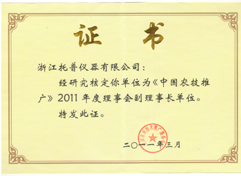 熱烈祝賀托普儀器成為《中國農(nóng)技推廣》2011年度理事會(huì)副理事長單位