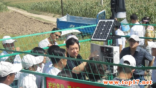 在示范區(qū)內(nèi),護欄內(nèi)的固定式無線農(nóng)業(yè)氣象綜合監(jiān)測站吸引了高處長及各參會代表的注意。陳渝陽總經(jīng)理詳細介紹了此系統(tǒng)的功能、用途,并現(xiàn)場簡單進行操作講解。各參會工作者不時詢問儀器性能、監(jiān)測時間設(shè)定、數(shù)據(jù)發(fā)送、數(shù)據(jù)查看、供電時間等細節(jié)問題,陳總經(jīng)理一一做出詳細解答。高處長在陳總經(jīng)理的指導(dǎo)下親自進行了操作。
