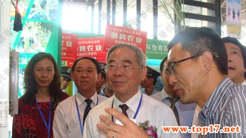 圖為:原農業(yè)部陳耀邦部長(左二)在全國農技推廣服務中心夏敬源主任(左三)、栗鐵申副主任(右二)、首席專家彭世琪女士(右一)等陪同下參觀托普展位。