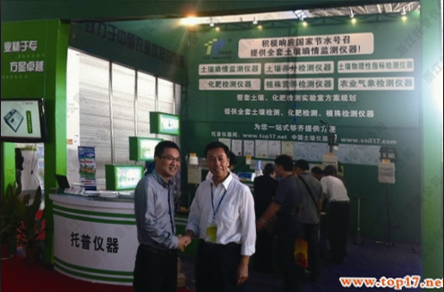 今年8月初,在蘭州召開的2011年全國(guó)旱作節(jié)水農(nóng)業(yè)技術(shù)培訓(xùn)班上,崔站長(zhǎng)已經(jīng)對(duì)托普儀器印象深刻,在榆中縣的甘肅省土壤墑情與旱情監(jiān)測(cè)示范區(qū)進(jìn)行實(shí)地參觀、考察時(shí),更是現(xiàn)場(chǎng)對(duì)托普儀器的無線多點(diǎn)土壤墑情監(jiān)測(cè)系統(tǒng)進(jìn)行的了操作,并對(duì)此儀器的性能予以充分的肯定。此次土肥雙交會(huì)上,也專程到托普展區(qū)參觀、指導(dǎo)。托普儀器總經(jīng)理陳渝陽先生陪同參觀,并介紹了托普儀器的發(fā)展概況及其他土肥類檢測(cè)儀器。