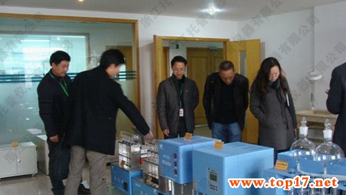 圖為:托普儀器相關(guān)領(lǐng)導(dǎo)陪同眾位評(píng)審專家參觀樣品室