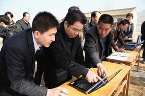 圖為:托普儀器技術(shù)人員為葉貞琴司長(中間)演示電腦查看墑情數(shù)據(jù)