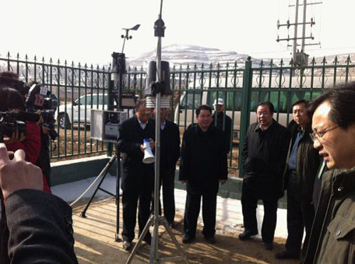 圖為:各大媒體陪同與會(huì)領(lǐng)導(dǎo)及代表參觀定西區(qū)國家級農(nóng)田土壤墑情與旱情檢測區(qū)安裝的無線多點(diǎn)土壤墑情監(jiān)測系統(tǒng)
