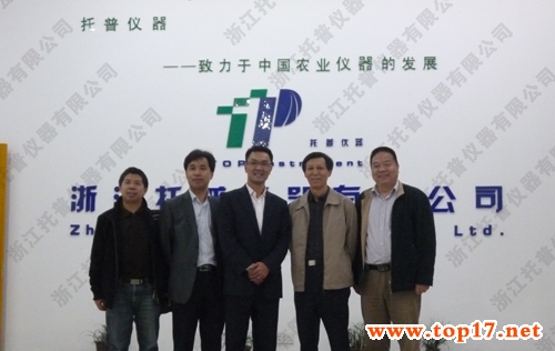 2012年4月17日,浙江省農(nóng)業(yè)廳副巡視員、人事處吳金良處長(zhǎng)、農(nóng)業(yè)廳農(nóng)業(yè)作物局潘偉峰副局長(zhǎng)、農(nóng)業(yè)廳辦公室周祥勝副主任、浙江省農(nóng)業(yè)科學(xué)院數(shù)字農(nóng)業(yè)研究所徐志福主任一行蒞臨托普指導(dǎo)工作,托普儀器陳渝陽(yáng)總經(jīng)理和朱旭華副總經(jīng)理等熱情接待了各位領(lǐng)導(dǎo)。