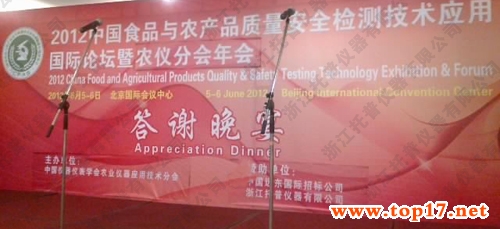 最后,浙江托普儀器有限公司與中國遠(yuǎn)東國際招標(biāo)公司協(xié)同贊助了“中國食品與農(nóng)產(chǎn)品質(zhì)量安全檢測(cè)技術(shù)應(yīng)用國際論壇農(nóng)儀分會(huì)年會(huì)答謝晚宴,此次展覽會(huì)畫上了圓滿的句號(hào)。
