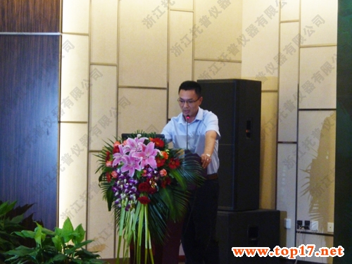 圖為:托普儀器陳渝陽(yáng)總經(jīng)理作為企業(yè)代表在會(huì)上做詳細(xì)報(bào)告