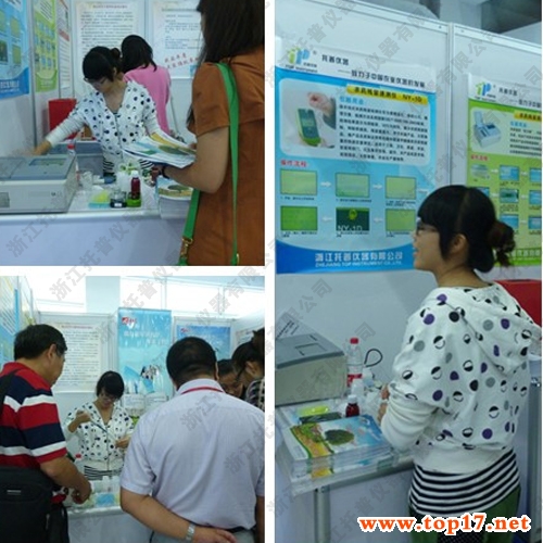 浙江托普儀器有限公司和杭州市食品營養(yǎng)學(xué)會共同參加此次活動,向廣大市民展示了托普儀器自產(chǎn)的可以檢測瓜果蔬菜中農(nóng)藥殘留的農(nóng)藥殘留速測儀NY-8D和NY-1D。托普儀器技術(shù)員在展會現(xiàn)場進行了青菜中的農(nóng)藥殘留測試實驗,不少市民進行圍觀,并高興的說到:“有了這種儀器,我們就可以吃到放心菜了!”同時杭州市食品營養(yǎng)學(xué)會進行了知識問答有獎活動 ,市民們不僅拿到了獎品,更通過觀看農(nóng)藥殘留測試實驗和知識普及活動增加了農(nóng)產(chǎn)品知識。