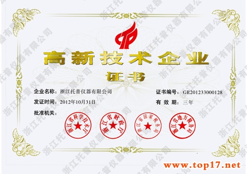 祝賀浙江托普儀器有限公司被認定為“國家高新技術(shù)企業(yè)”