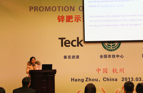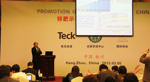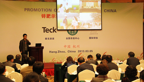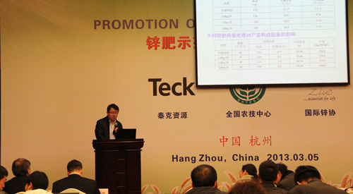 在上午的鋅肥示范推廣技術(shù)培訓(xùn)與研討會(huì)上,會(huì)議邀請(qǐng)了國(guó)際專(zhuān)家加拿大泰克資源安德魯·格林教授、國(guó)際鋅協(xié)會(huì)樊明憲教授、國(guó)內(nèi)專(zhuān)家浙江大學(xué)副教授馮英、天津市土壤肥料工作站鄭育鎖科長(zhǎng)講解了鋅肥技術(shù)以及鋅肥在中國(guó)農(nóng)業(yè)生產(chǎn)中試驗(yàn)示范研究結(jié)果。據(jù)國(guó)際鋅協(xié)會(huì)報(bào)道,全球種植谷物的土地中有50%存在缺鋅的潛在危險(xiǎn)、而我國(guó)土壤普遍缺鋅。農(nóng)作物缺鋅主要與干旱缺水、鹽堿、漬澇等農(nóng)田環(huán)境有關(guān),科學(xué)施用鋅肥是解決農(nóng)業(yè)缺鋅問(wèn)題的主要途徑。近年來(lái),隨著節(jié)水農(nóng)業(yè)的不斷發(fā)展,水肥一體化逐漸成為新的鋅肥科學(xué)施用方式?茖W(xué)施用鋅肥,能夠提高作物產(chǎn)量,改善農(nóng)產(chǎn)品品質(zhì)。為促進(jìn)鋅肥的科學(xué)施用,廣泛宣傳鋅對(duì)作物生產(chǎn)和人體健康的作用,全國(guó)農(nóng)技推廣中心與國(guó)際鋅協(xié)會(huì)、加拿大泰克資源合作開(kāi)展鋅肥示范推廣工作,并大力培養(yǎng)應(yīng)用技術(shù)人才、開(kāi)展田間技術(shù)指導(dǎo)。