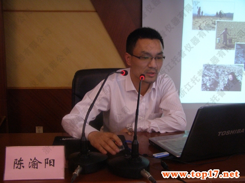圖為:托普儀器銷售經(jīng)理陳曦先生現(xiàn)場發(fā)言