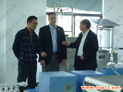 圖為:加拿大泰克資源安德魯·格林教授(中間)、國際鋅協(xié)會樊明憲教授(左一)與托普儀器陳渝陽總經(jīng)理(右一)合影留念