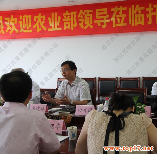 7月5日,農(nóng)業(yè)部原部長、中國農(nóng)技推廣協(xié)會名譽(yù)會長陳耀邦、全國農(nóng)技推廣中心副主任、中國農(nóng)技推廣協(xié)會秘書長謝建華一行,蒞臨浙江托普儀器有限公司進(jìn)行調(diào)研。