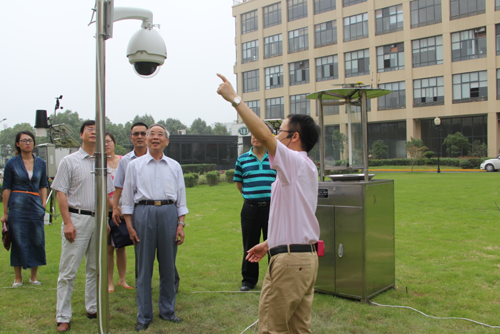 圖為:調(diào)研組查看托普儀器室外監(jiān)測(cè)點(diǎn)
