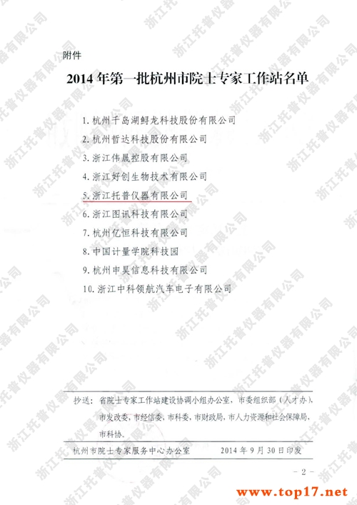 日前,《關(guān)于認(rèn)定2014年第一批杭州市院士專家工作站的通知》頒發(fā),認(rèn)定托普儀器在內(nèi)的10家單位院士專家工作站為2014年第一批杭州市院士專家工作站。