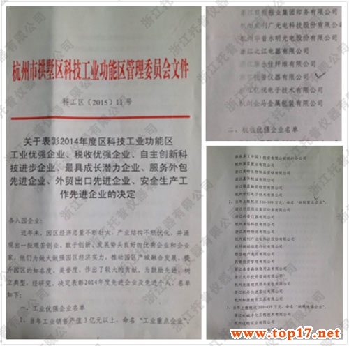 托普儀器被評(píng)定為拱墅區(qū)“工業(yè)先進(jìn)企業(yè)”、“納稅重點(diǎn)企業(yè)”