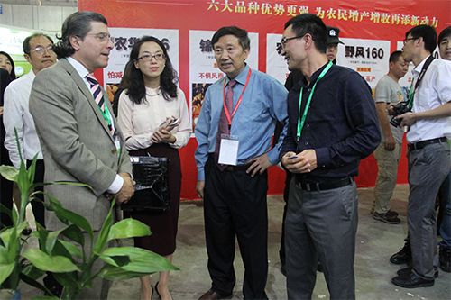 種子雙交會期間,農(nóng)業(yè)部種子管理局局長張延秋、副局長馬淑萍一行還帶領(lǐng)前來參加中國-阿根廷種業(yè)交流峰會的阿根廷代表團參觀了托普云農(nóng)展區(qū)。阿根廷國家種子研究所董事會主席拉威諾勒 萊英姆多農(nóng)業(yè)工程師仔細(xì)觀摩了公司所展出的種子檢驗儀器和系統(tǒng),并與陳渝陽總經(jīng)理進行交流。