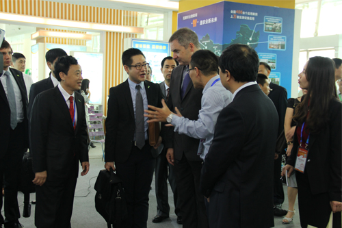 農(nóng)交會(huì)期間,農(nóng)業(yè)部余欣榮副部長(zhǎng)、農(nóng)業(yè)部市場(chǎng)與經(jīng)濟(jì)信息司王小兵副司長(zhǎng)一行蒞臨托普展區(qū)參觀指導(dǎo)。余副部長(zhǎng)表示,農(nóng)業(yè)物聯(lián)網(wǎng)技術(shù)應(yīng)用除了現(xiàn)有的系統(tǒng)及硬件以外,還要與射頻技術(shù)緊密結(jié)合,提高物聯(lián)網(wǎng)的科技含量。屈冬玉副部長(zhǎng)和斯洛文尼亞副總理一行也蒞臨托普展區(qū),并與陳渝陽(yáng)總經(jīng)理親切交談。雙方就農(nóng)業(yè)物聯(lián)網(wǎng)的研發(fā)推廣以及落地應(yīng)用等問題進(jìn)行交流。