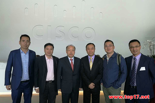 周國(guó)輝廳長(zhǎng)(左三)、陳渝陽(yáng)董事長(zhǎng)(右一)一行在思科