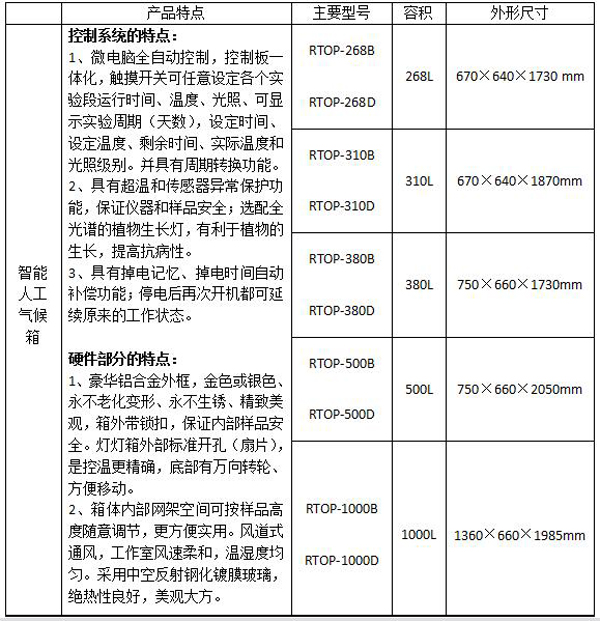 智能人工氣候箱儀器型號列表: