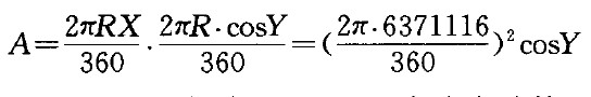 各為一度的方格面積為: