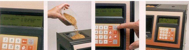 1.待測谷物倒入漏斗; 2.按進樣鍵,自動進樣 ; 3.儀器測試并顯示結(jié)果;