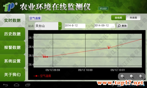 農(nóng)業(yè)環(huán)境在線監(jiān)測儀(高端型)又叫溫室娃娃、溫室管家、溫室環(huán)境在線監(jiān)測儀,自帶管理云平臺,無論身在何處,可隨時隨地通過電腦網(wǎng)頁在線查看歷史數(shù)據(jù)和實時數(shù)據(jù)。也可以隨時隨地通過智能手機查看歷史和實時數(shù)據(jù)。