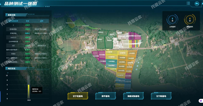 科研育種一張屏:GIS地圖展示基地的地塊劃分,團(tuán)隊或課題小組的地塊分布;可視化展示團(tuán)隊的育成品種總數(shù),以及各個團(tuán)隊育成品種總數(shù)及歷年的趨勢;可視化展示優(yōu)勢品種的品種名,圖片及簡介信息,可視化展示課題組或團(tuán)隊的簡介;可視化展示課題組或團(tuán)隊的科研成果等成績。