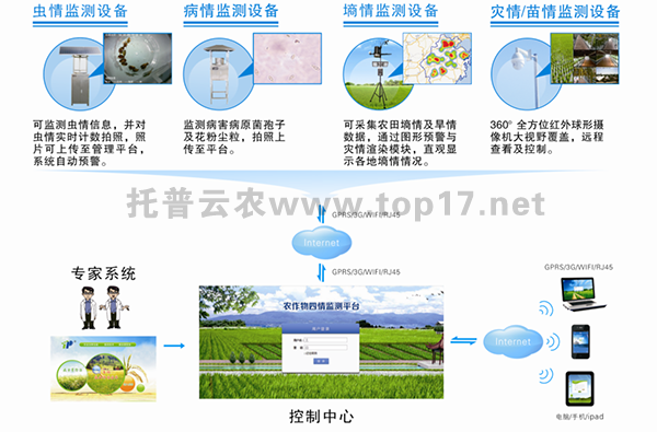 農(nóng)作物病蟲害實時監(jiān)控物聯(lián)網(wǎng)設(shè)備系統(tǒng)包含遠(yuǎn)程拍照式蟲情測報燈、遠(yuǎn)程病害監(jiān)測儀、植物環(huán)境信息監(jiān)測設(shè)備以及預(yù)警預(yù)報系統(tǒng)、專家系統(tǒng)、信息管理系統(tǒng)等組成?蓪崿F(xiàn)全天無人值守遠(yuǎn)程實時在線監(jiān)測蟲情、病害、環(huán)境信息,自動上傳到物聯(lián)網(wǎng)監(jiān)控平臺,也可通過手機(jī)APP查看管理。