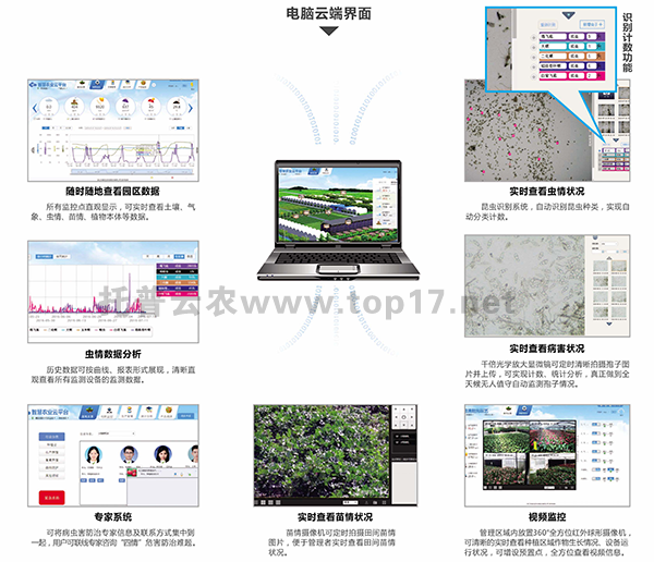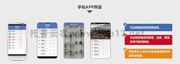 系統(tǒng)集成病蟲害及環(huán)境監(jiān)測設(shè)備,可在WEB端或手機(jī)APP端遠(yuǎn)程實時在線查看監(jiān)測區(qū)域環(huán)境、蟲情、病害信息,并提供專家指導(dǎo)。