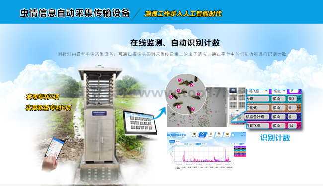 蟲情信息自動采集傳輸設(shè)備是新一代圖像識別式蟲情測報工具,在無人監(jiān)管的情況下,自動完成誘蟲、殺蟲、蟲體分散、拍照、運(yùn)輸、收集、識別等系統(tǒng)作業(yè),并實時將環(huán)境數(shù)據(jù)和病蟲害數(shù)據(jù)遠(yuǎn)程上傳至智慧農(nóng)業(yè)云平臺,在平臺上實現(xiàn)自動識別計數(shù),對蟲害的發(fā)生與發(fā)展進(jìn)行分析和預(yù)測,為現(xiàn)代農(nóng)業(yè)提供服務(wù),滿足蟲情測報及標(biāo)本采集的需求。