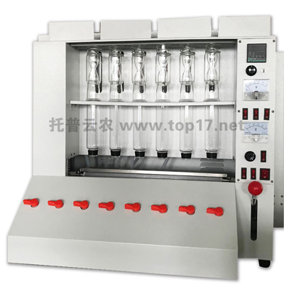 粗纖維測定儀是依據(jù)目前常用的酸堿消煮法消煮樣品,并進行重量測定來得到試樣的粗纖維含量的儀器。可測量各種糧食、飼料、谷物、食品及其他農(nóng)副產(chǎn)品中粗纖維的含量,可同時測定6個樣品,自動控溫。