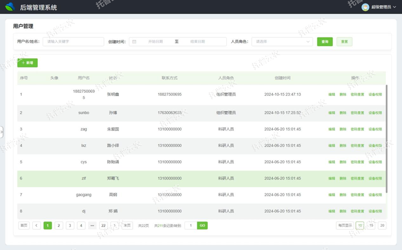(2)人工氣候室數(shù)據(jù)列表:支持展示所有人工氣候室終端列表及基礎(chǔ)信息;支持展示人工氣候室設(shè)備狀態(tài):在線(xiàn)、離線(xiàn);支持人工氣候室序列號(hào)查詢(xún);支持新增/刪除終端數(shù)據(jù);支持編輯終端名稱(chēng);